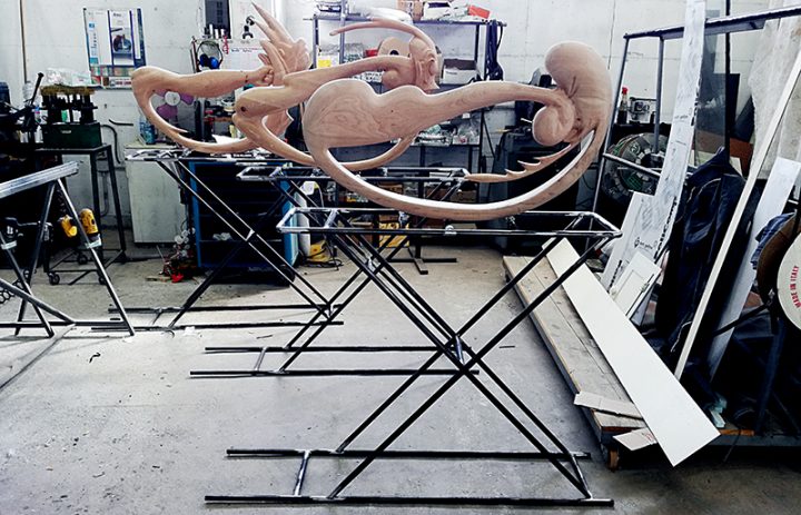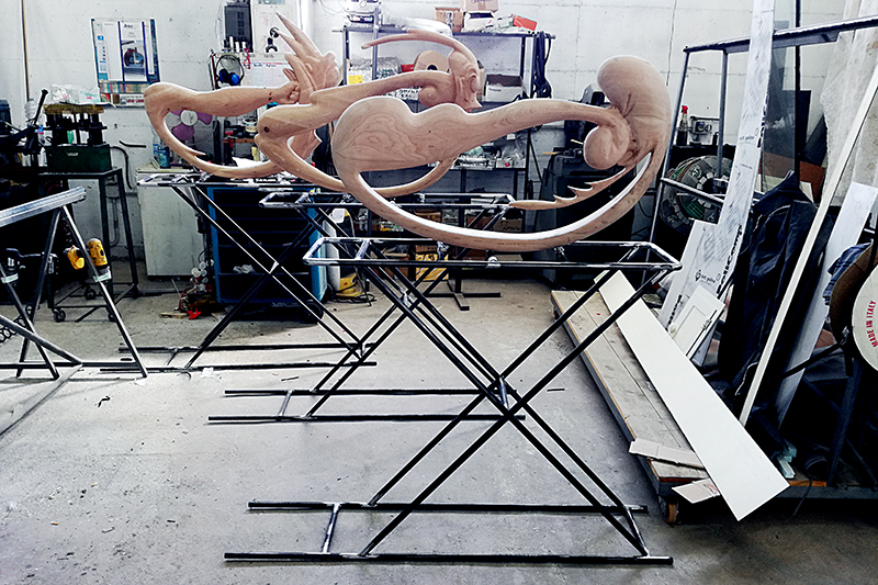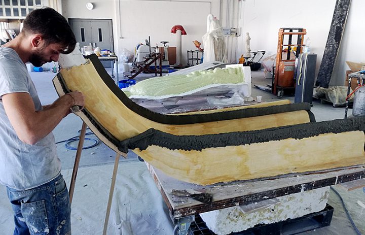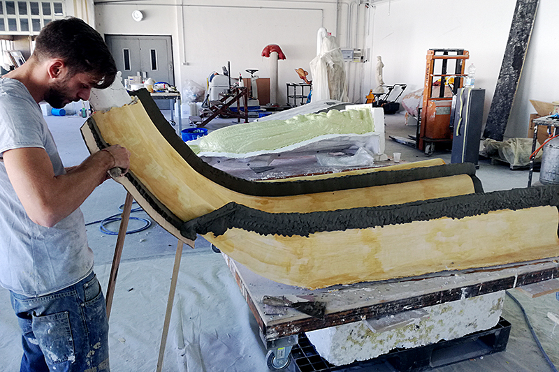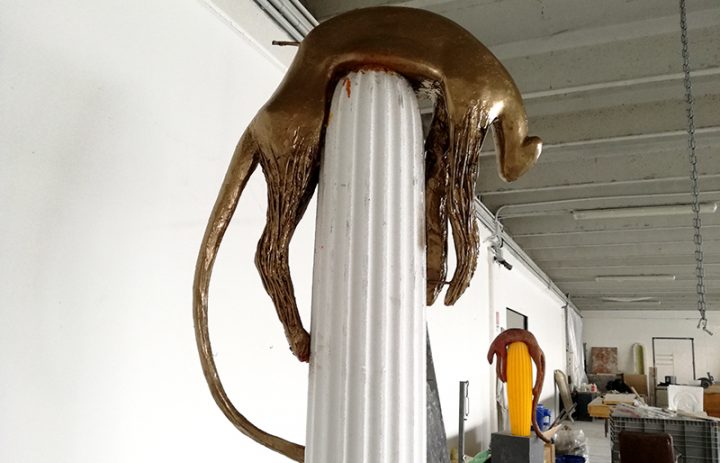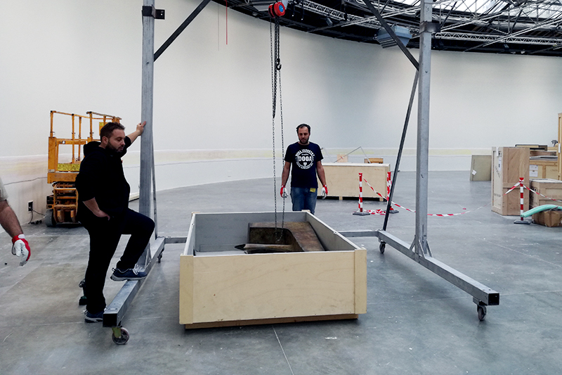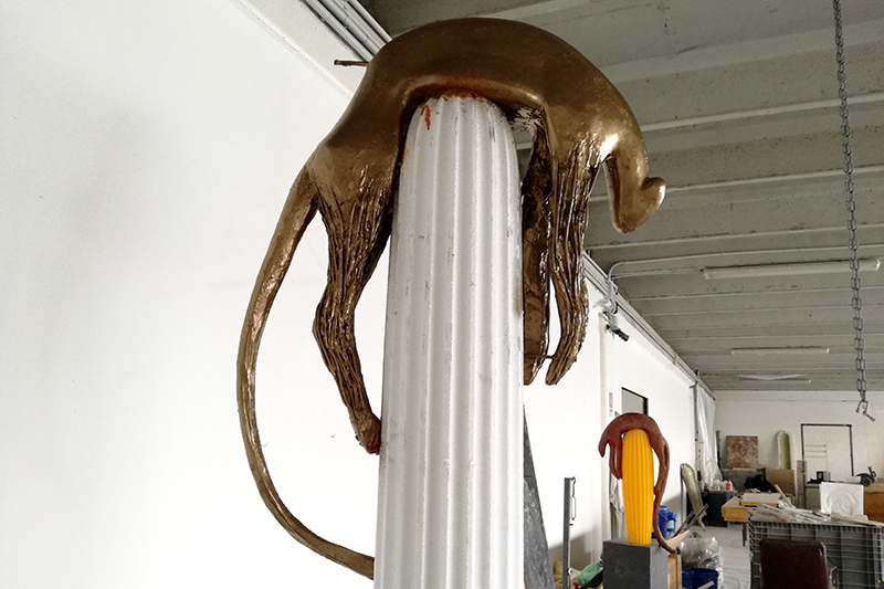 Henrot, attraverso le sculture, i disegni, i video e gli affreschi ricerca i modi in cui i vari giorni della settimana strutturano il nostro rapporto con il tempo. Fonderia Nolana ha collaborato con l’artista per la realizzazione delle opere attraverso la combinazione di vari materiali come chained bronze: alluminio e pelle, fino all’installazione di esse.