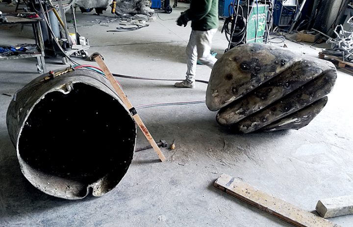 Di particolare importanza è l’opera “Punisched”, una scultura realizzata in bronzo bianco con struttura di ancoraggio nascosta, progettata da Fonderia Nolana su misura per Camille Henrot.